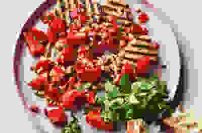 Grilled halloumi with zingy strawberry salsa