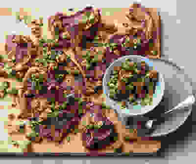 Lamb chops with fig & pistachio salsa