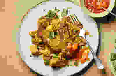Sizzling spiced lamb cutlets with aloo gobi saag