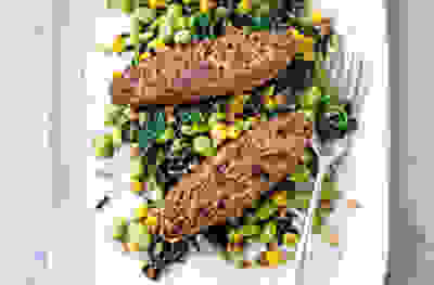 Tahini chicken with spinach & chickpeas