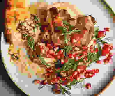 Yogurt-marinated chicken with pomegranate bread salad