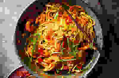 Speedy roasted pepper pasta with crunchy chorizo crumbs