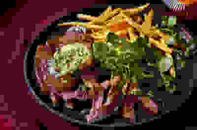 Pork Milanese with chicory, cherry pepper & ricotta salad