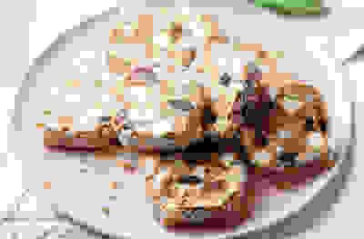 Baked sweet potatoes with crispy chorizo & smoked chipotle cream
