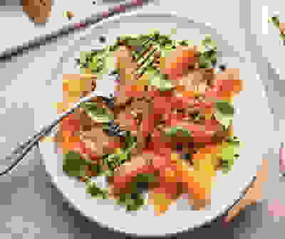 Slow roast tomato and basil pasta