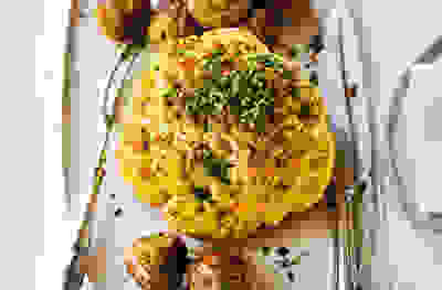 The Happy Pear's chestnut & sage stuffed, roasted cauliflower with cashew nuggets