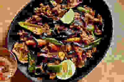 Slow-cooked sweet potato, mixed bean & jackfruit chilli