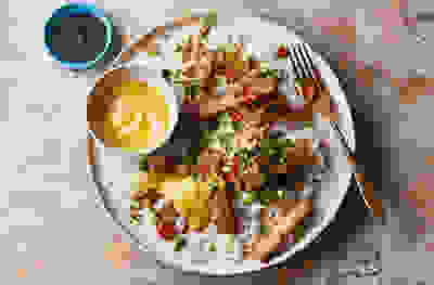 Salt & pepper tofu with katsu mayo