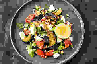 Aubergine, feta & chickpea salad
