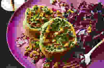 Spiced squash burritos with herby coconut yoghurt