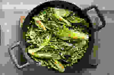 Braised cos lettuce and peas with thyme