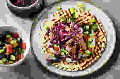 Shawarma-style pulled lamb with tahini-yogurt dressing