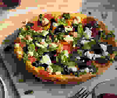 Flatbreads with seaweed whipped feta & roasted tomatoes