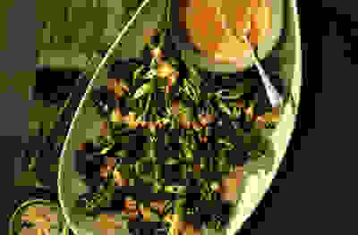Chargrilled vegetable & asparagus salad with jammy eggs