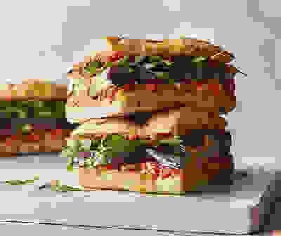 Grilled aubergine & romesco sandwiches