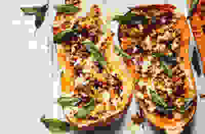 Stuffed squash with sage & tahini sauce