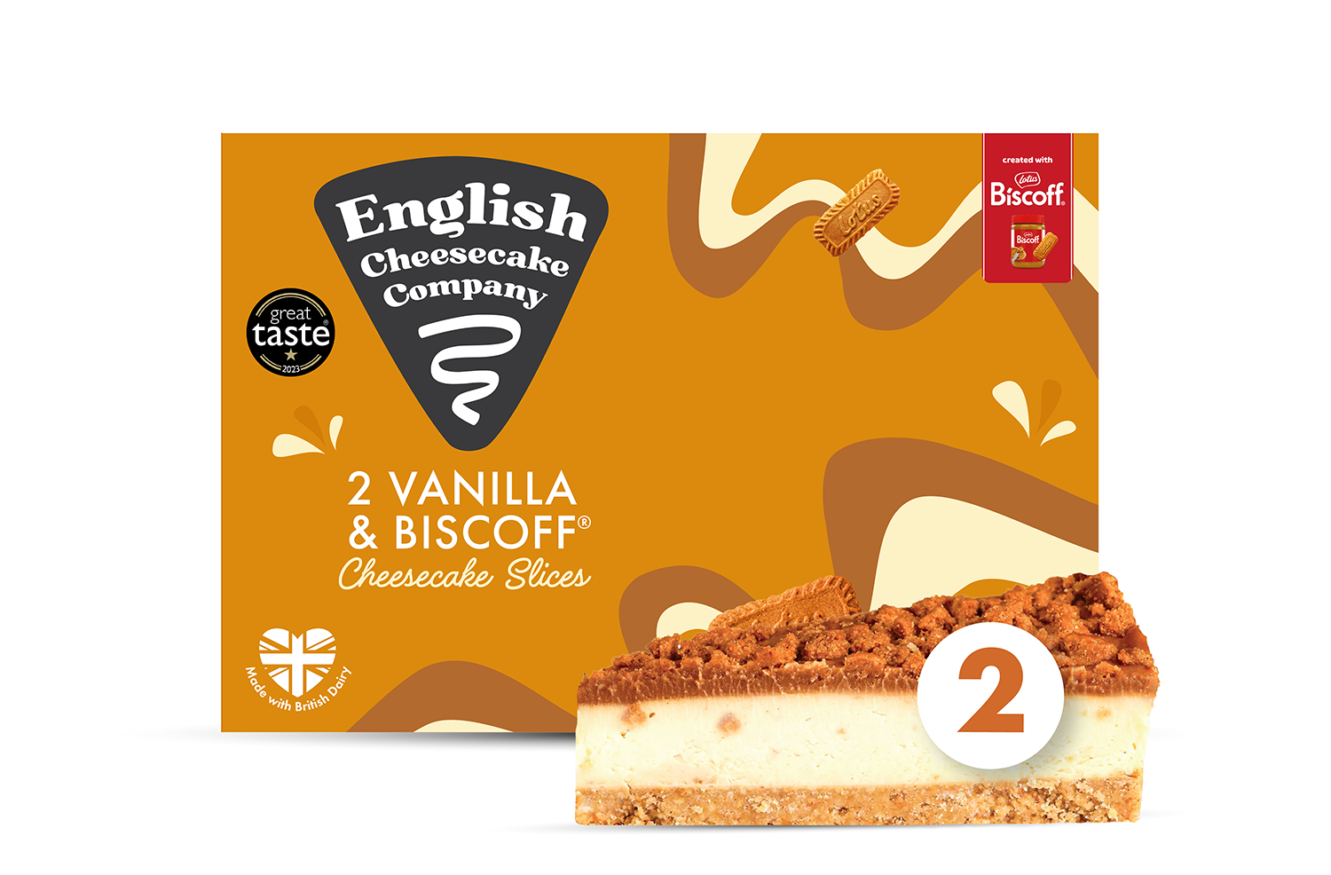 0 English Cheesecake Co. 2 Vanilla & Biscoff Slices in trolley.